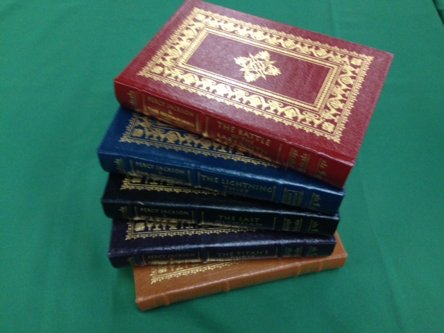 Five books of the Percy Jackson and the Olympians series signed by author Rick Riordan